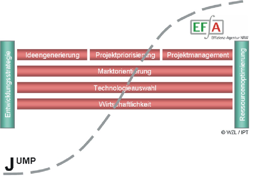 in Zusammenarbeit mit ausgewählten Beratern aus NRW durch die Beratungsleistung JUMP eine finanzielle Unterstützung bei der Einführung neuer Methoden zur Optimierung der Produktentwicklungsprozesse an.